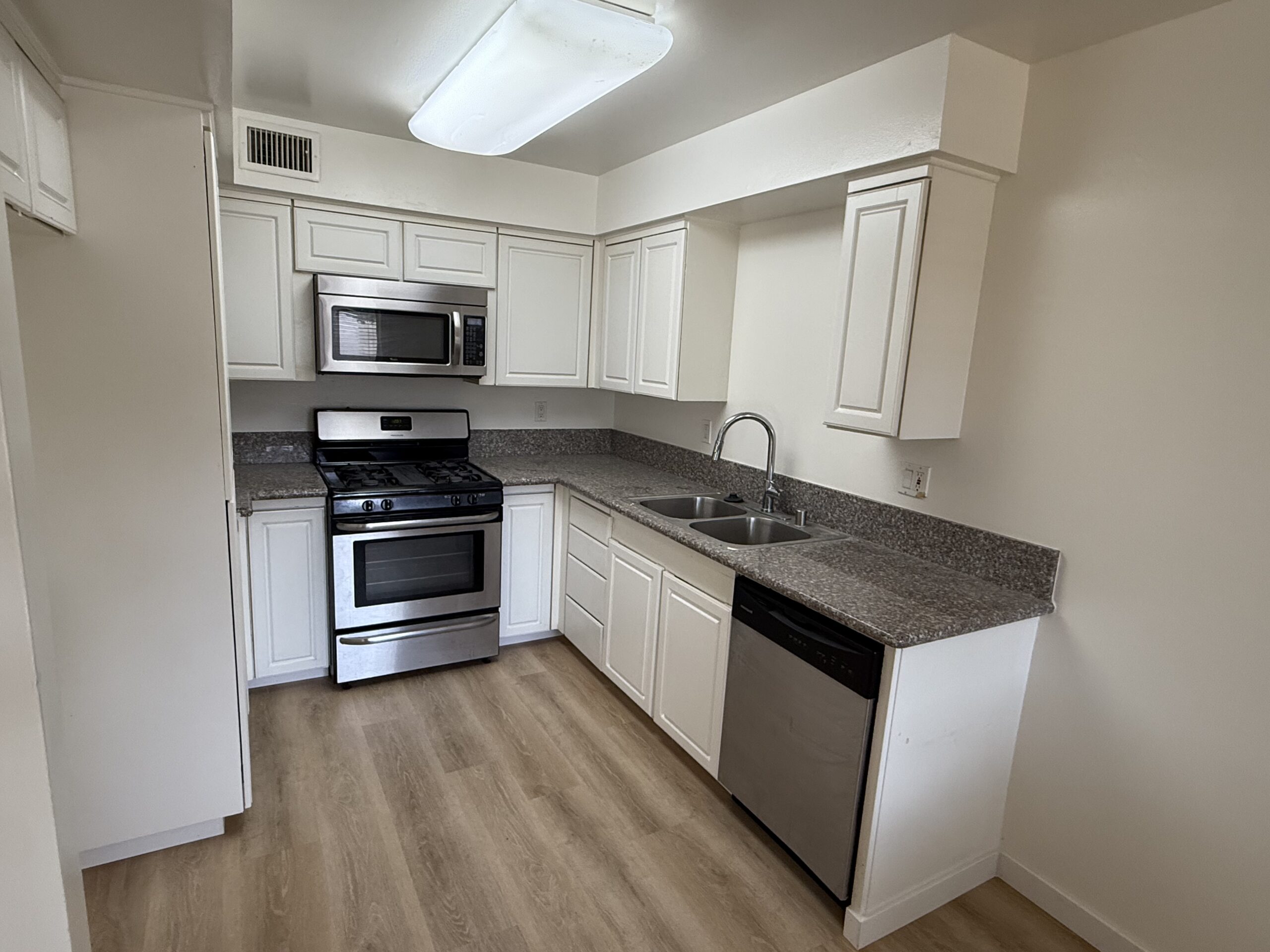 This 4 unit building is close to Coyote Hills Golf Course in the City of Fullerton. Owner pays water and trash. The 2 bedroom 2 bath lower level unit is in great condition. The kitchen has new cabinetry, counter tops, appliances, and paint. It also has granite counter tops, vinyl plank flooring, a dishwasher and built in microwave. It also has central air conditioning, newer carpet and 2 spacious bedrooms. Off of the livingroom is a patio for enjoying the outdoor climate. The unit has a 2 car tandem parking garage. Community laundry facilities are available on site. The owner has a no pet policy at this time. Come take a look, it’s a beautiful unit.